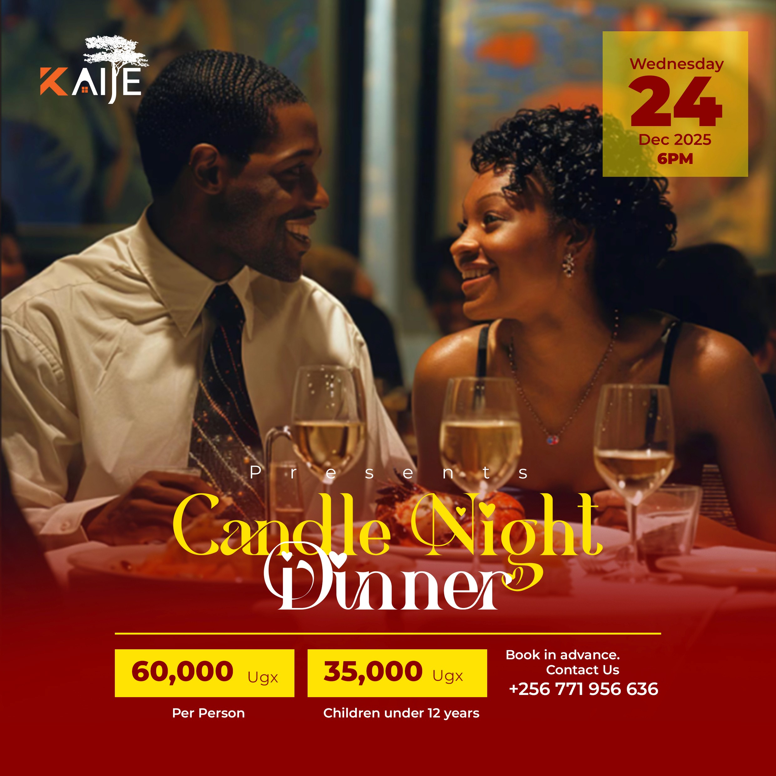 Spend your Christmas Eve in an intimate and magical setting with our elegant Candle Night Dinner. Enjoy a beautifully curated menu, soft lighting, and a warm ambience perfect for couples, families, and friends looking to celebrate the night in style. 💰 Charges: Adults: 60,000 UGX Kids (Under 12 years): 35,000 UGX A serene evening filled with good food, good company, and unforgettable holiday warmth awaits you.